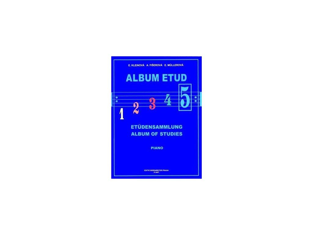 pedagogická hudebninaKlavírklavír sóloJazyk publikace: cz./ger./eng.ed. Eliška Kleinová, Alena Fišerová, Eva MüllerováŘada pěti alb etud představuje mnohostranný a široký studijní materiál obsahující potřebnou studijní látku k zvládnutí mnoha technických a výrazových problémů. Díky tomu patří mezi neustále žádané tituly. Album 5 uzavírá tuto řadu etud určených pro první cyklus ZUŠ a zahrnuje studijní látku 6. a 7. ročníku. I tento sešit je určený hlavně pro žáky-amatéry, okruh technických problémů se tu rozšiřuje o nácvik velkého rozkladu, arpeggia, oktáv a procvičení polyfonní hry. Tak jako doposud doplňují jednotlivé etudy stručné metodické poznámky, které napomáhají k jejich rychlejšímu a dokonalejšímu zvládnutí.Doplňkové parametry