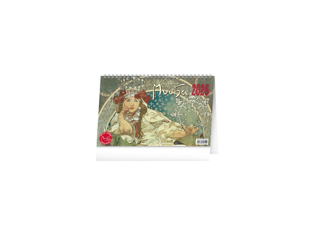 Průřez tvorbou Alfonse Muchy zobrazený na 53 reprodukcích secesního malíře a designéra, který se proslavil tvorbou plakátů pro divadelní představení. Týdenní stolní kalendář s českými jmény obsahuje také svátky, památné dny, měsíční fáze a přehled na celý rok 2026 a 2027.Doplňkové parametry