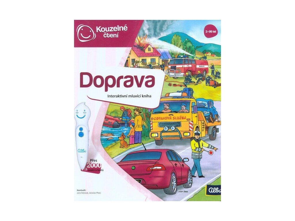 nteraktivní naučná kniha Doprava z edice Kouzelné čtení zavede děti od 3 let do světa dopravních prostředků a strojů. Vydají se na dopravní hřiště, projdou se ulicemi města, poznají práci záchranářů, prozkoumají letiště, prohlédnou si stavbu, projedou se po statku traktorem, zavítají na nádraží a udělají si výlet do přístavu. Interaktivní mluvící kniha Naučí děti bezpečnosti v silničním provozu, poznají dopravní značky a dozví se spoustu užitečných informací ze světa dopravy a strojů. Na každé stránce knihy Doprava si děti poslechnou zábavnou a poučnou dopravní písničku. V knize Doprava se mohou dozvědět i řadu technických detailů o fungování nejrůznějších strojů. Kniha Doprava obsahuje přes 2 000 zvuků a textů. Je namluvena Janou Holcovou a Jaroslavem Pleslem a ilustrovaná Josefem Švarcem.Doplňkové parametry