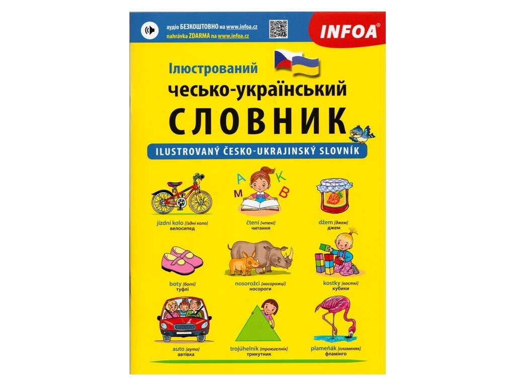 Plný název: Ілюстрований чесько-український словник / Ilustrovaný česko-ukrajinský slovník. Ilustrovaný slovník je určený všem, jejichž rodným jazykem je ukrajinština a chtějí se naučit základní česká slovíčka. Slovník je uspořádaný do 23 kapitol, ve kterých se čtenáři v obou jazycích seznámí se slovy z každodenního života. K dispozici je zdarma ke stažení nahrávka českých slov pro nácvik správné výslovnosti.Doplňkové parametry
