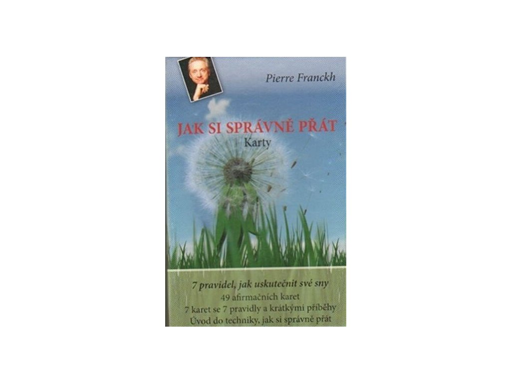 Pokud nemáte dostatek času k přečtení knihy, která se již stala bestsellerem, ale i přesto se chcete naučit správně si přát, je tato sada karet "Jak si správně přát" určena právě pro vás. Člověk si může přát cokoliv. Že přání nemusejí zůstat jen snem a jak získat schopnost dostat darem to správné od života, to nám ukazuje Pierre Franckh pomocí 7 karet se 7 pravidly a dalších 49 karet s afirmacemi k potvrzení úspěšných přání. Kartu po kartě tak procvičujete techniku úspěšných přání a posilujete vaši důvěru ve vlastní schopnosti a možnosti. Sada karet Jak si správně přát, okořeněná příklady ze života Pierra Franckha, nabízí cestu, jak úspěšně měnit a šťastně utvářet vlastní život.Doplňkové parametry