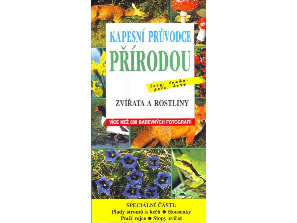 Nový průvodce přírodou, který vychází v kapesním formátu, je ideálním pomocníkem při vycházkách do lesa, hor či kamkoliv jinam. Obsahuje více než 500 barevných fotografií a množství informací o rostlinách a zvířatech žijících v lesích, na loukách, v mokřinách i ve vysokých horách. S jednotlivými rostlinami a zvířaty a s prostředím, ve kterém žijí, vás seznámí fotografie a text; jsou popsány jejich znaky, výskyt, způsob života, rozmnožování a dalšízajímavosti. Piktogramy v záhlaví každé strany a barevné odlišení zjednodušují rychlé vyhledání daného živočicha či rostliny. Ve speciální dodatkové části jsou uvedeny plody stromů a keřů, popisy některých housenek, vajec ptáků a stop, které po sobě zanechávají zvířata. Dotisk r. 2003, 2010, 2012 ISBN 978-80-7237-223-2 (dotisk 2012)Doplňkové parametry