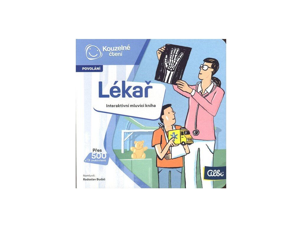 Interaktivní mluvící mini kniha Lékař seznámí děti od 5 let s povoláním lékaře. S Elektronickou Albi tužkou poznají, jak to vypadá u dětského lékaře. Dozví se, jak se léčí alergie, jak funguje rentgen či fonendoskop. V knize na ně čeká přes 500 zvuků a textů. Nechybí jednoduchý kvíz, který procvičí získané znalosti.Doplňkové parametry