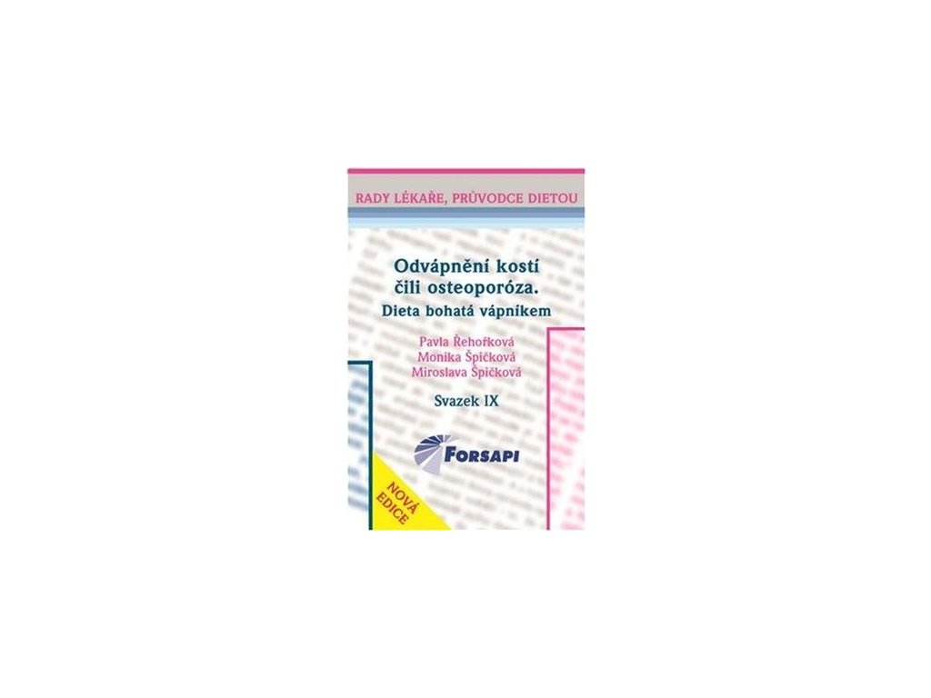Publikace by měla být pomocníkem jak pacientům s rozvinutou osteoporózou, tak všem ostatním, kteří chtějí učinit něco pro prevenci vzniku této civilizační choroby. Osteoporóze se říká tichý zloděj kostí. Vzniká při nedostatku vápníku, bílkovin či vitaminu D, sedavém zaměstnání, účinkem některých léků, při některých onemocněních. Náplní knížky jsou informace o příčinách choroby a její prevenci. Srozumitelnou formou přináší informace o kostech, metabolismu vápníku, dietních opatřeních. V receptové části najdete recepty na chutná jídla vhodná při osteoporóze. Knížka obsahuje slovníček odborných pojmů a cizích výrazů.Doplňkové parametry