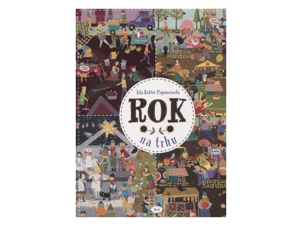 Velkoformátové leporelo ve stylu oblíbeného Roku v lese dětem tentokrát představí barvitý život prodejců na trhu a jejich zákazníků. Zjistí, jak místní slaví svátky, jak se vypořádávají s rozmary přírody nebo jak se mění nabídka na stáncích v jednotlivých ročních obdobích. Vítejte na trhu v Dobrotíně! Každý týden tady můžete nakoupit zdravou zeleninu, řemeslné výrobky a další věci, které s láskou vypěstovali nebo vyrobili místní lidé. Dýňový baron nabízí vegetariánská jídla. Když vás honí mlsná, můžete si zajít ke stánku manželů Vanilkových. Mariana zase šije neobyčejné hračky a Anežka oblečení. Bylinkářka Boženka připravuje léčivé směsi a nejkrásnější květiny najdete u Violky. Nemáte chuť se u nás zastavit?Doplňkové parametry
