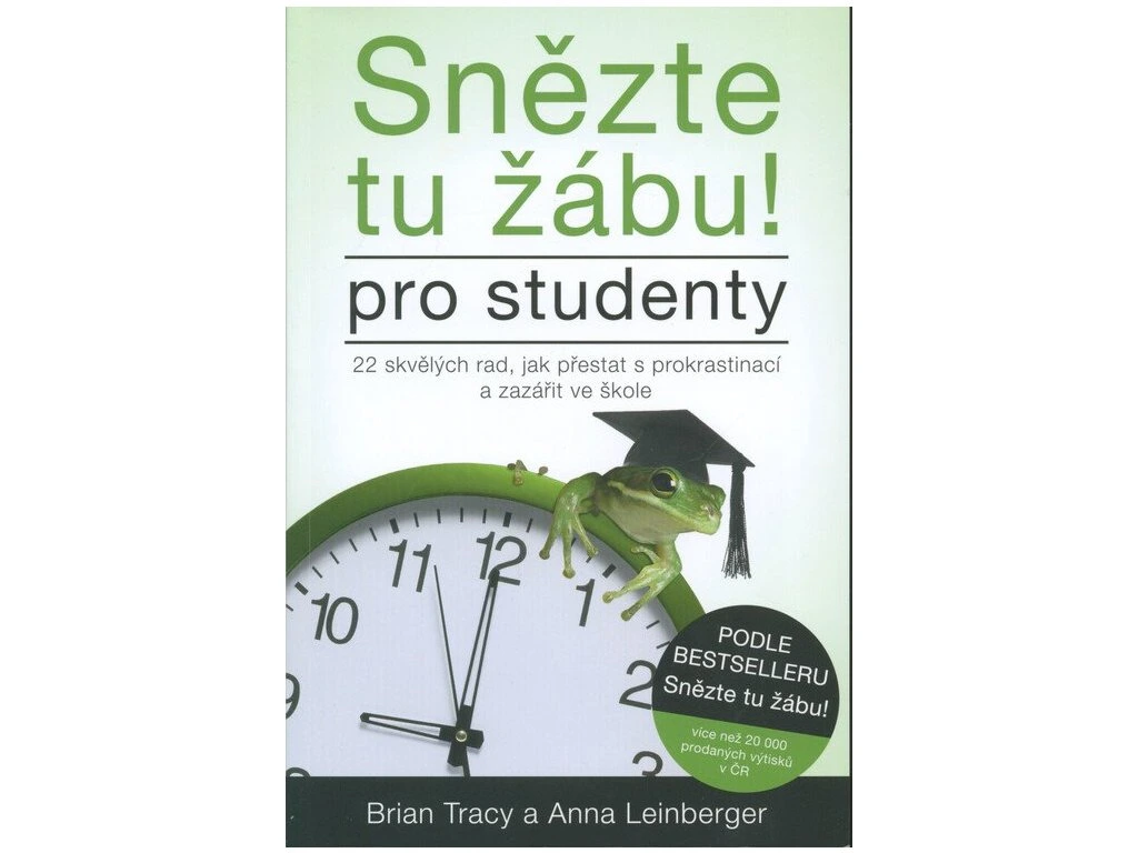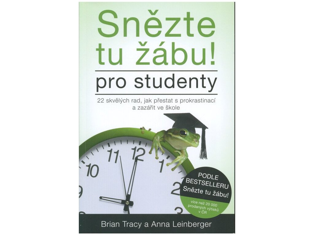 Stejně jako dospělí se i studenti různého věku potýkají s tím, jak si zorganizovat čas. Na střední škole obvykle poprvé zjistí, že time management potřebují, aby zvládli skloubit školu, mimoškolní aktivity (všechny povinné, chtějí-li jít na vysokou školu), brigádu, stáže, rodinné povinnosti atd. Na vysoké škole pak zažívají více svobody a volnější režim, což činí organizaci času ještě obtížnější. Kniha Briana Tracyho Snězte tu žábu! pomohla milionům lidí po celém světě zvládnout více práce za méně času. Nyní se tento světový, život měnící bestseller přizpůsobil specifickým potřebám studentů. Autoři jim nabízejí tipy, nástroje a techniky pro efektivnější plánování času, stanovení cílů, vytrvání u úkolu (i když je nezajímavý), vypořádání se se stresem a rozvíjení dovedností, aby dosáhli mnohem dál, než si kdy mysleli, že je možné. Rodiče i učitelé si už dlouho přáli, aby Brian Tracy takovou knihu napsal.Doplňkové parametry