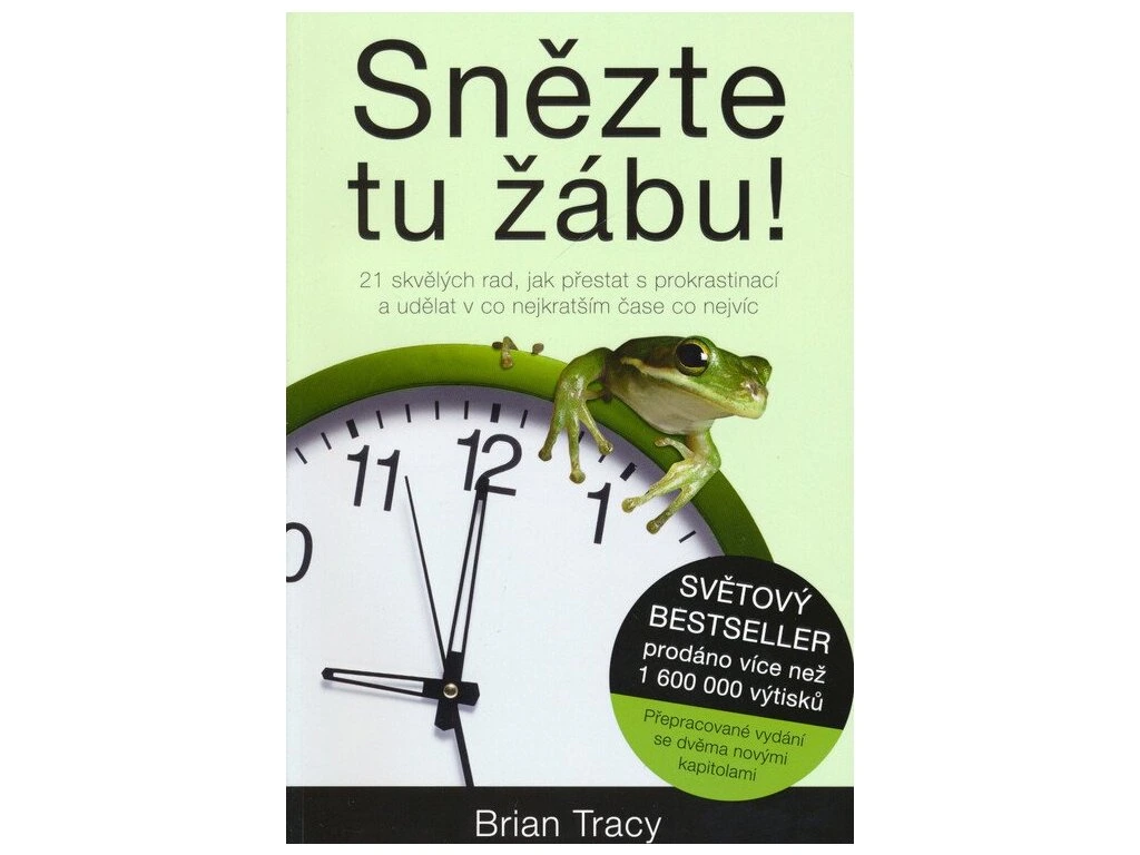 Tato kniha z oblasti time-managementu přináší zcela nový pohled na efektivní využití času pomocí 21 jednoduchých pravidel, která používají úspěšní lidé po celém světě. Přestaňte odkládat nepříjemné úkoly a získejte tak více času pro svůj šťastný život! V knize Snězte tu žábu vám úspěšný kouč a lektor time-managementu Brian Tracy ukáže cestu, jak skončit s odkládáním a udělat důležité věci ještě dnes. Změňte způsob svého myšlení a dosáhněte tak svých vytoužených cílů! Tak už snězte tu žábu! Užíváním metafory „snězte tu žábu“ vás Brian Tracy naučí, jak se zbavit těch nejnáročnějších úkolů a zorganizovat si čas.Doplňkové parametry